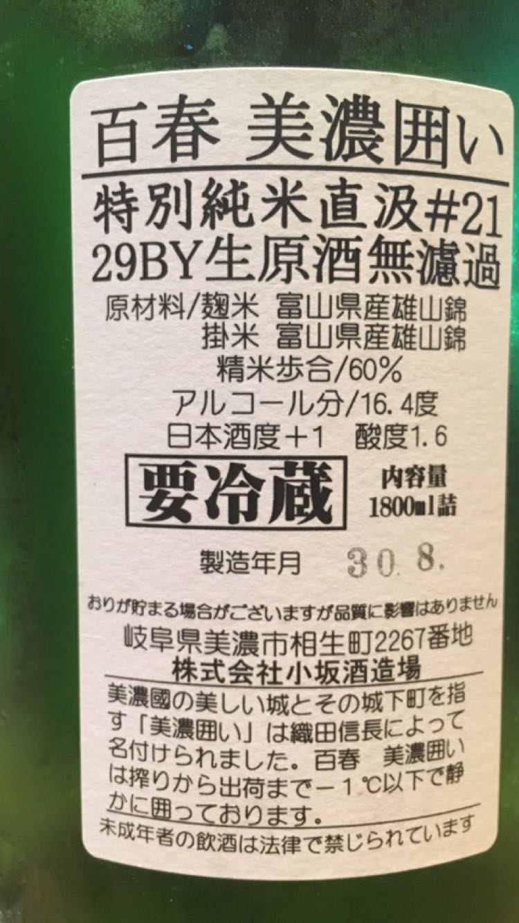 特別純米酒 限定酒 ひやおろし 生詰