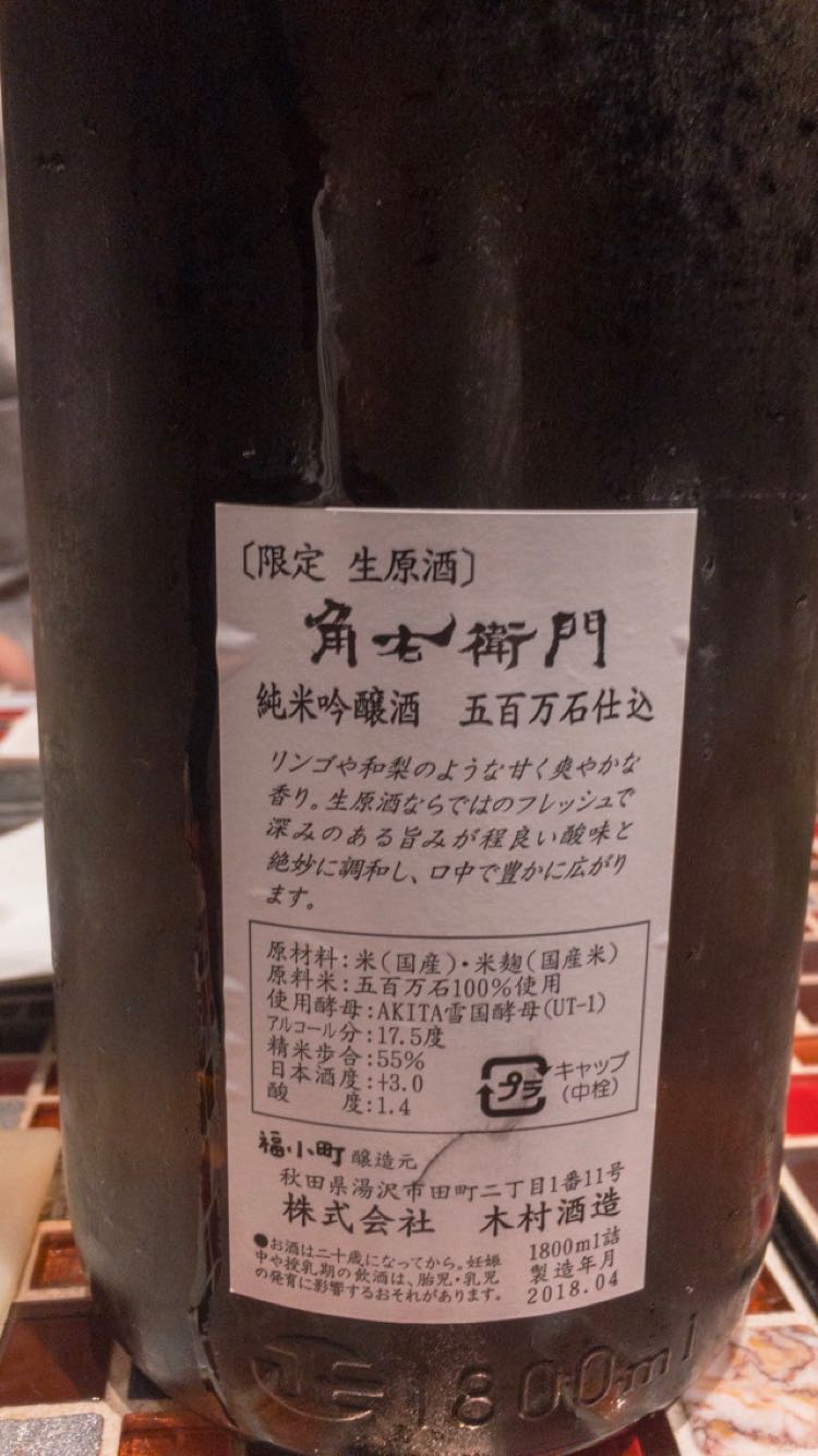 純米吟醸、角右衛門。木村酒造の旨いやつ。