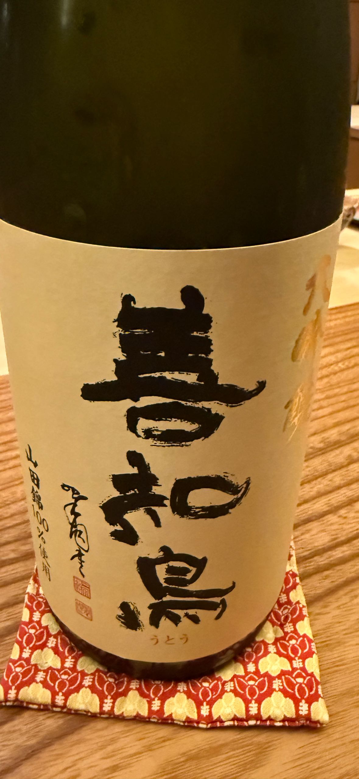 吟醸。田酒でお馴染み西田酒造の別銘柄「うとう」。田酒と2本セット。戦前主流だった幻の酒好適米「辨慶」100%。上立ち香豊かなバナナ(?)香。口当たり辛く、フルーティな旨味が広がり、田酒らしくキリッとキレる。吟醸ながら、あまりアル添感を感じない。
