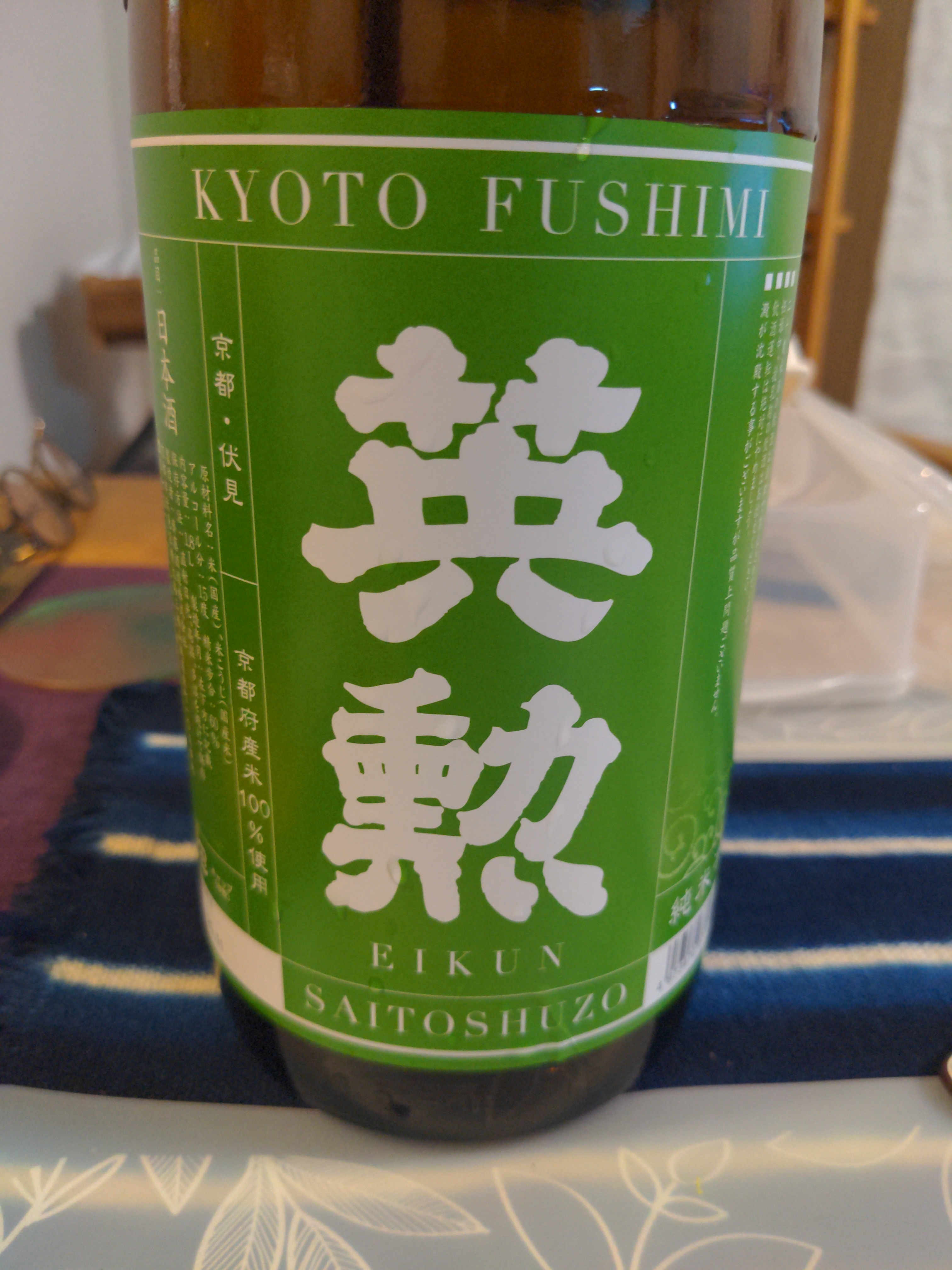 元教え子が最近結婚して、お祝いの品を贈ったら、「英勲純米大吟醸 井筒屋伊兵衛」というのをお返しにくれたので、早速味見。使っているお米も京都産の「祝」という品種。
