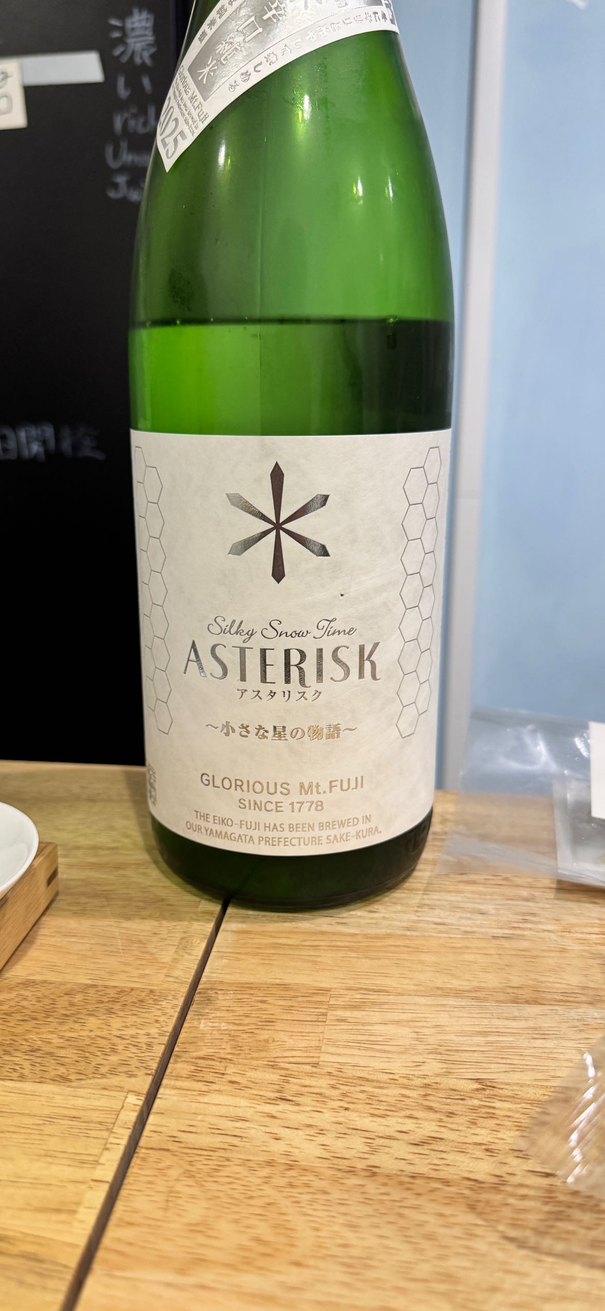 栄光冨士 辛口純米 アスタリスク 出羽の里 冬ひや酒。横浜の某そば屋にて。冷酒で。