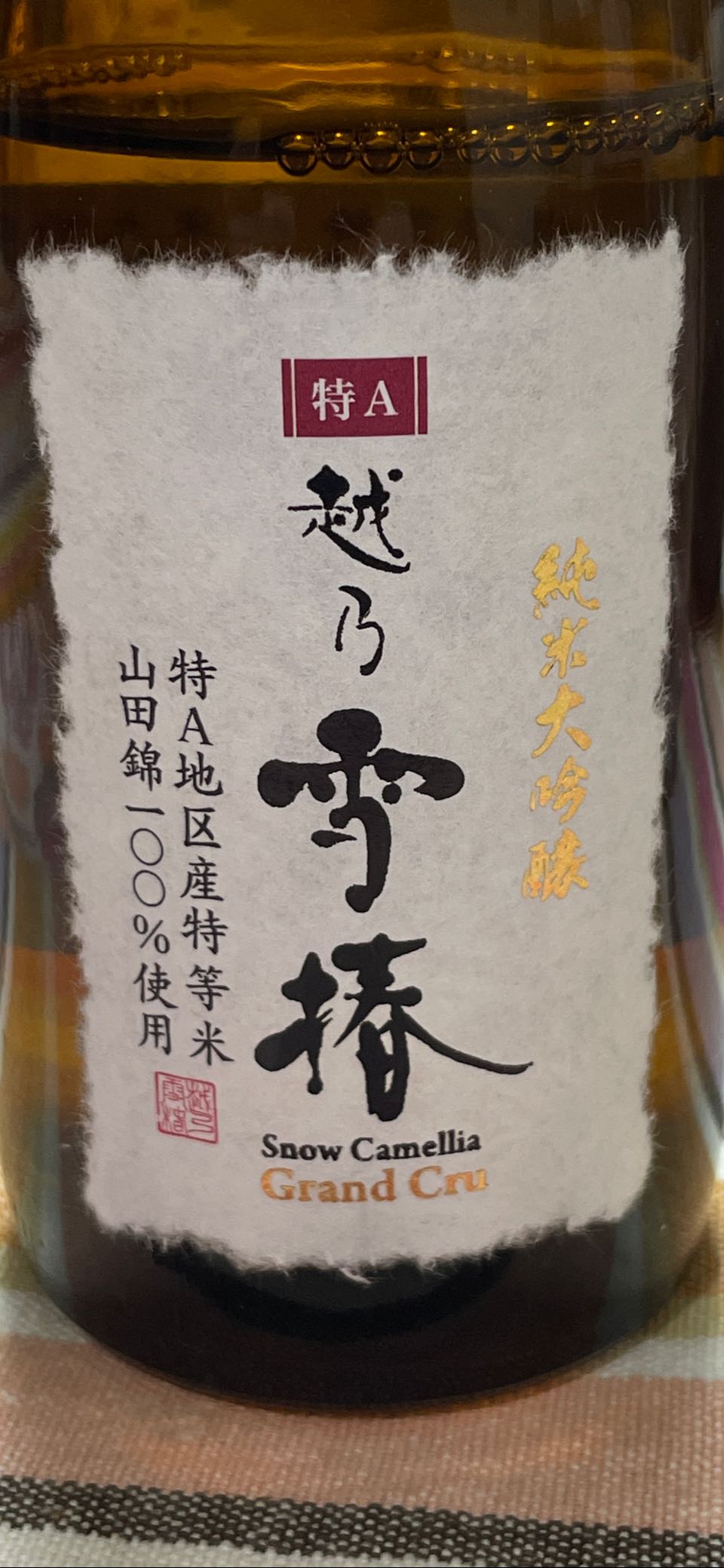 新潟の越乃雪椿 純米吟醸。いかにも東北なキレの良い味ですが、柔らかな旨味もあって深みを感じます。