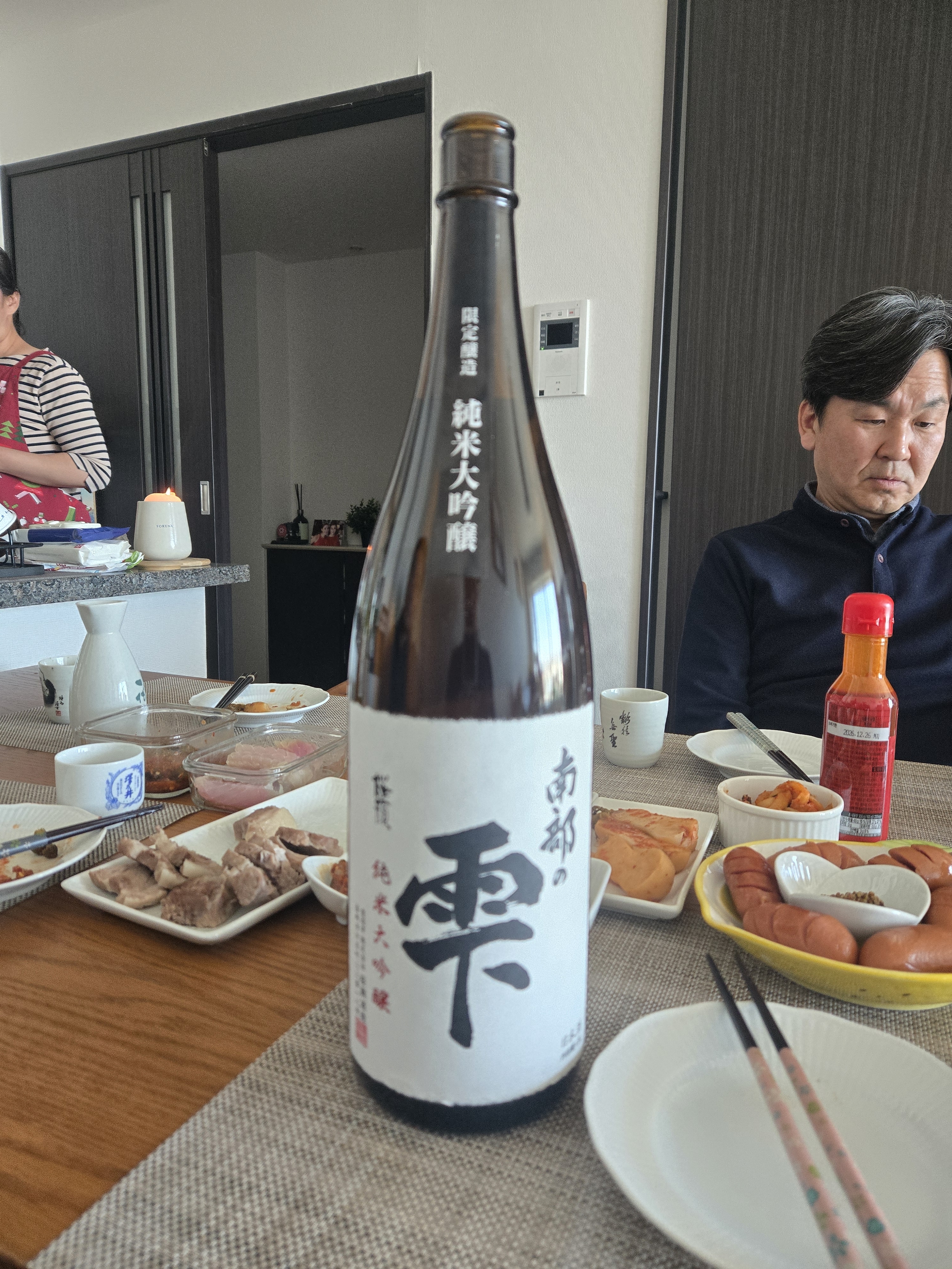 お土産で頂きました。岩手県の酒です。「南部の雫」限定の純米大吟醸酒です。美味しくいただきます。