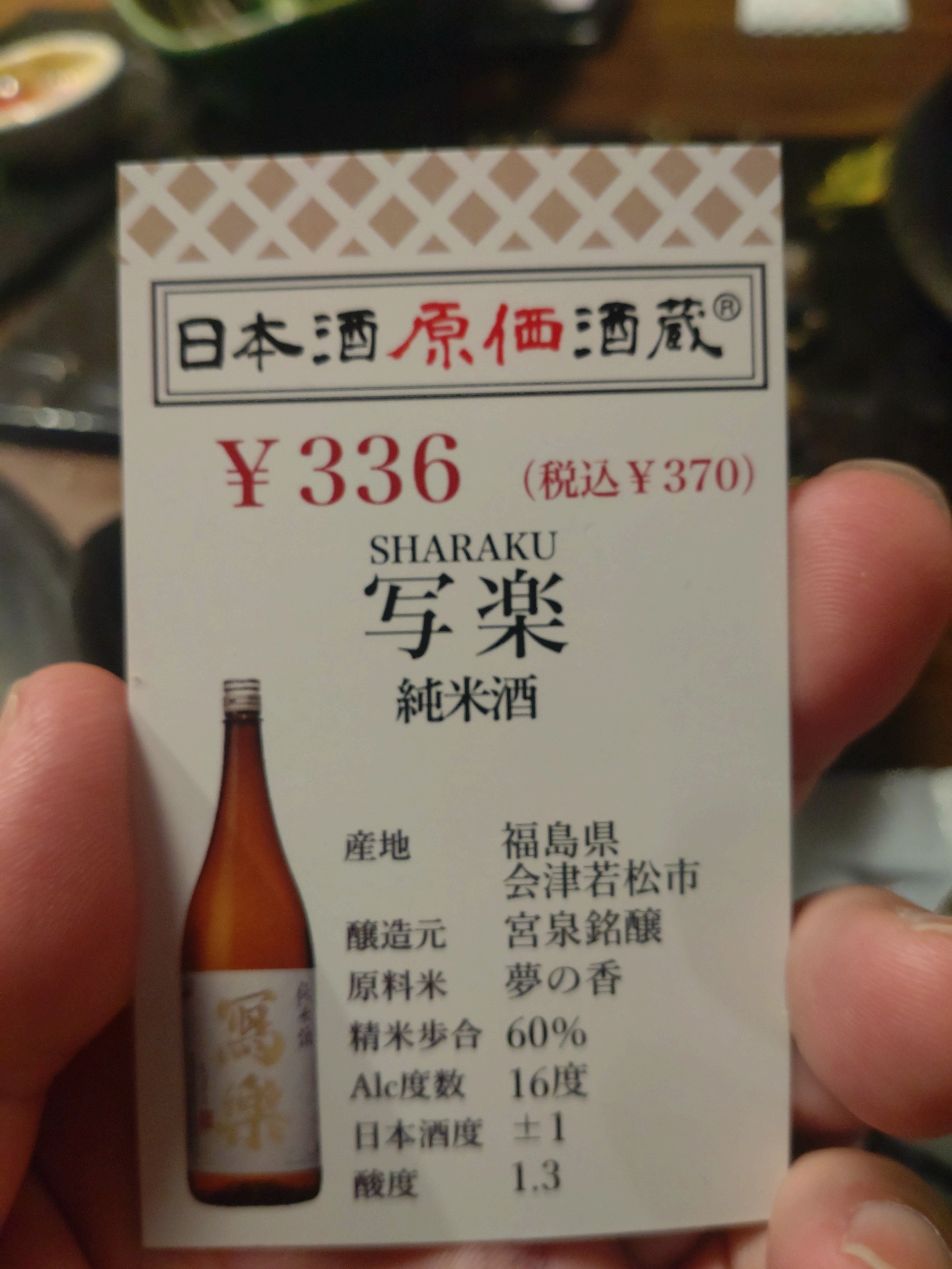 宮泉銘醸の日本酒「冩楽」は、純米吟醸であり、酸味や甘みがやや軽めの酒です。香りは洋梨を思わせるもので、お米の甘味と綺麗な酸味が調和した味わいが特徴です。口当たりはやや丸みがあり、キレも良く上品な印象を与えます。うすにごりのため、アルコール度数は16%とやや高めですが、飲みやすい仕上がりとなっています。福島県産の「夢の香」を使用した酒であり、深い味わいとフレッシュ感が共存する、バランスの取れた味わいが特徴的です。