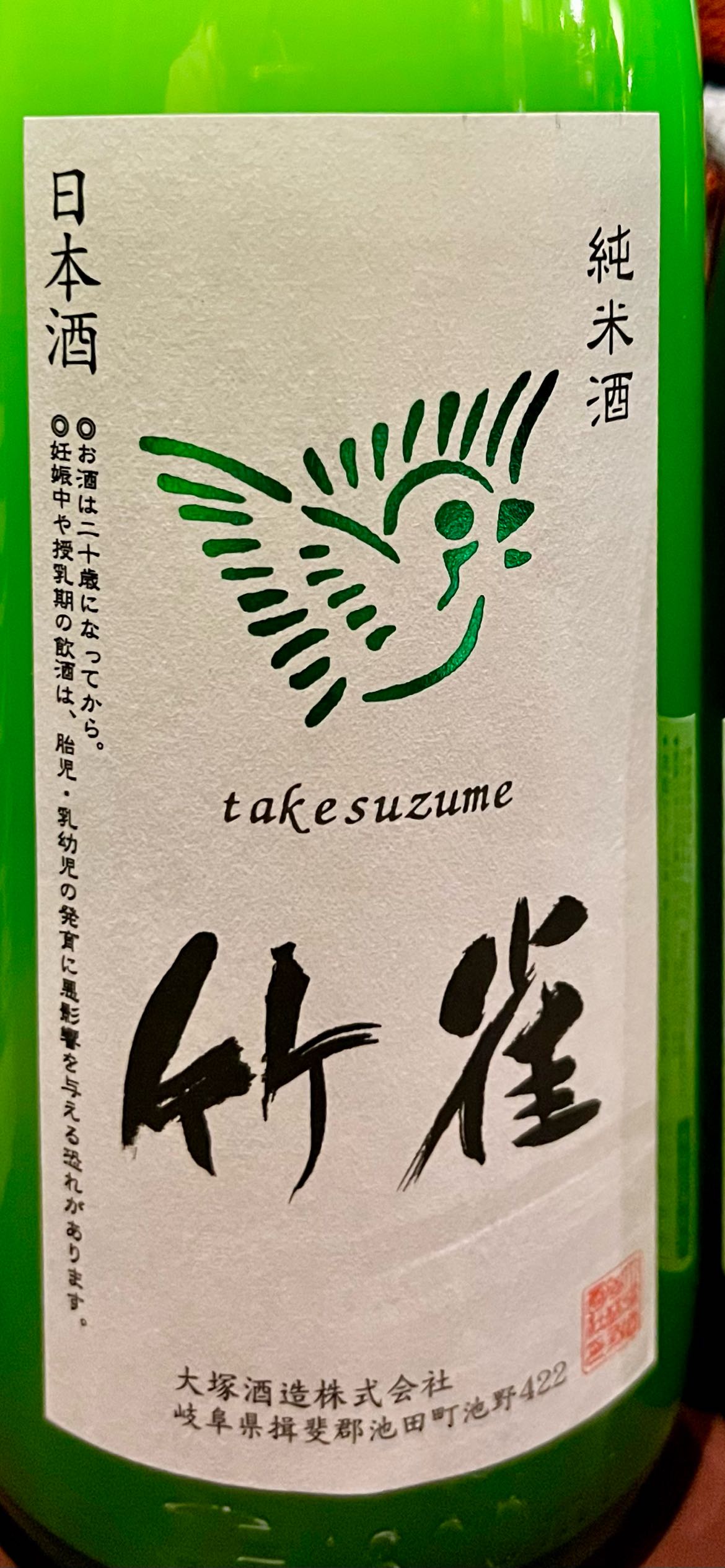 Takesuzume. Kimoto style. Some sweetness, nice rice flavor. Some alcohol. 3.5 stars.