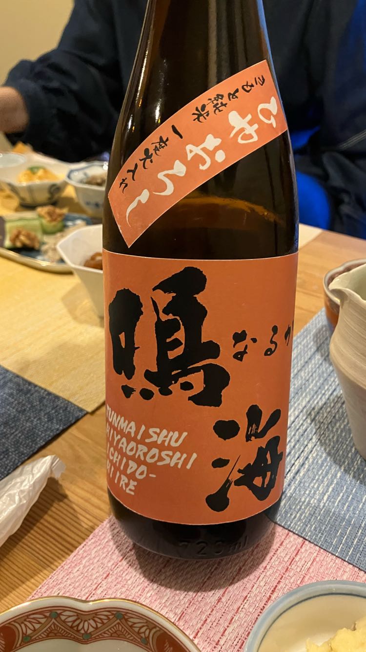 鳴海(なるか)を冷やで呑む。薄にごり。かなりの辛口。味がドライですごいキレ味。なかなかお目にかかれない初めての味。