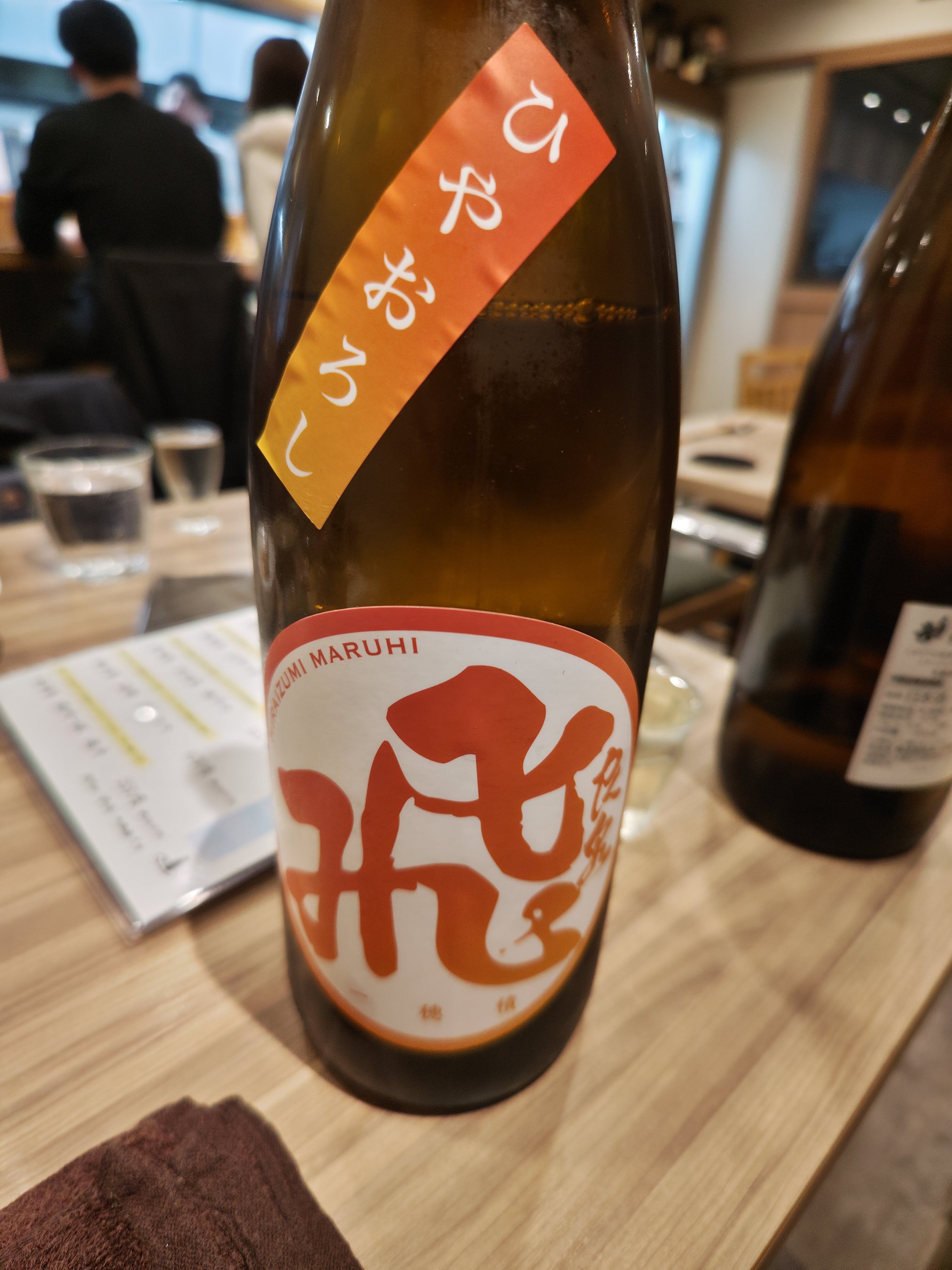 透明で若干フルーティな香り。山廃の硬さはありますが、フルーティな旨味の後に辛味がじわじわっと感じます。つがるにて。