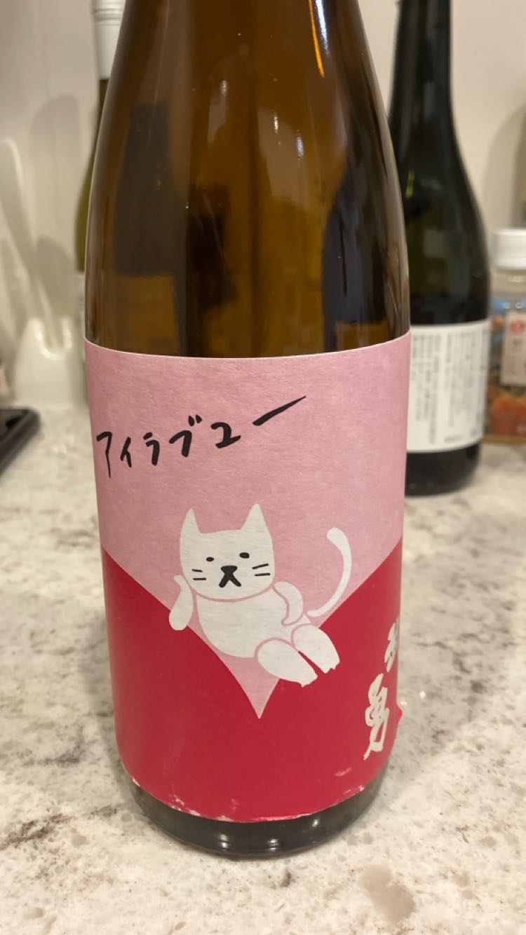 武勇。ラベルの猫さんに惹かれて。純米吟醸です。さっばりめの口当たりでちよっとなんなら辛味も感じます。しばらく口の中で日本酒らしい旨み余韻が素晴らしい。