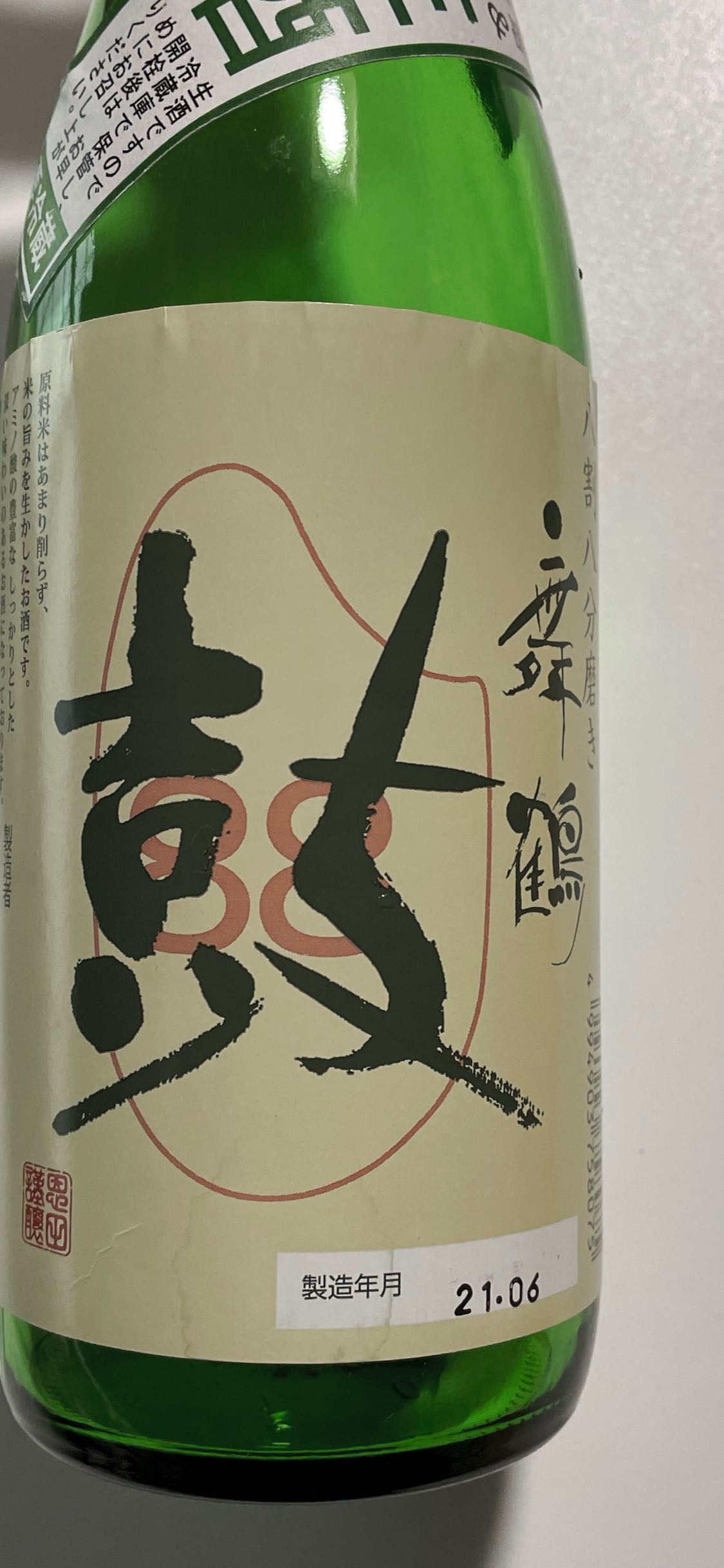 舞鶴 鼓88 八割八分磨き 生原酒 アルコール度数19度 燗をすると穀類の香りが強く、燗酒好きにはたまりません!