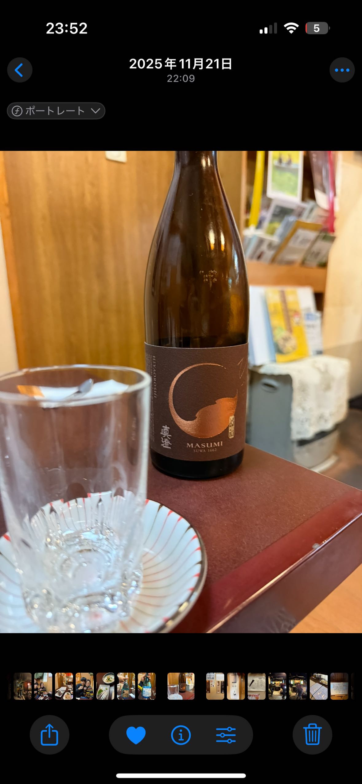 「宮坂醸造の真澄は、古き良き日本酒の味わいが楽しめる一方、ネオ日本酒好きにもおすすめの品。フルーティーな香りと豊かな味わい、苦みのわずかな後味が特徴。樽の香りが強く、辛口ながら飲みやすい生原酒も人気。日本酒っぽい酒精に少々の甘ったるさがあり、飲み慣れた方にも楽しめる。」