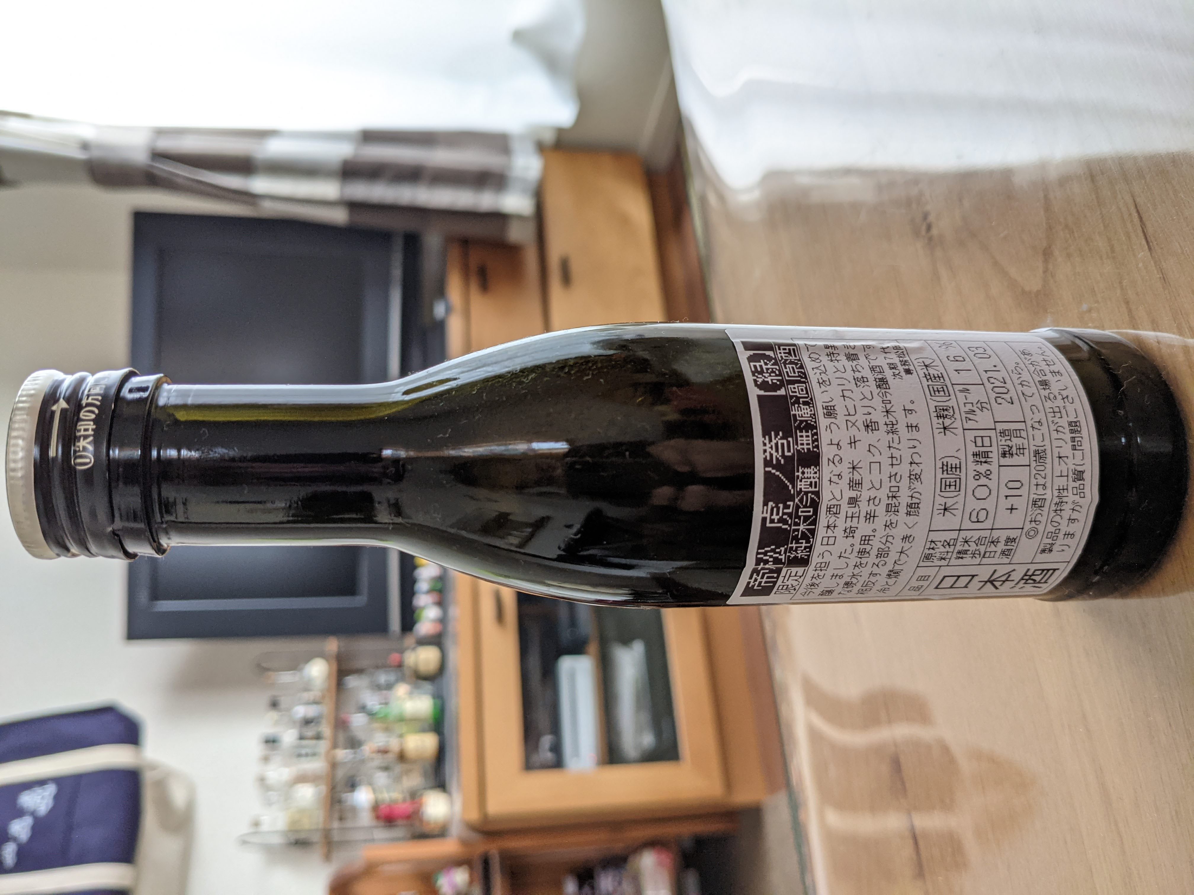 埼玉県比企郡・小川町、帝松の限定冷醸酒、社長の酒。かなりのこだわりを感じさせてくれる日本酒。この辺の酒蔵は、けっこうレベルが高い。この社長の酒は、味変が明確。しかし言葉にするのが、かなり難しい一本。旨みも甘みもほぼない。初めは独特の薬品っぽさ。渋みが来て、最後に辛みがきて、さっと抜けていく。旨みや甘みに頼らずに、日本酒として成立させるのは、かなり研究しないと、無理なのではないか。この酒はそれで成立しているのが、大したもの。個性的な一本。ただ、すごいのは分かるが、凡な自分はいわゆる旨い酒が好きなので、3点。でも、感心した。